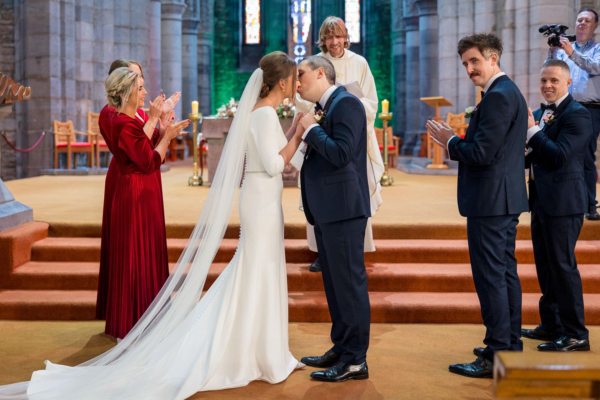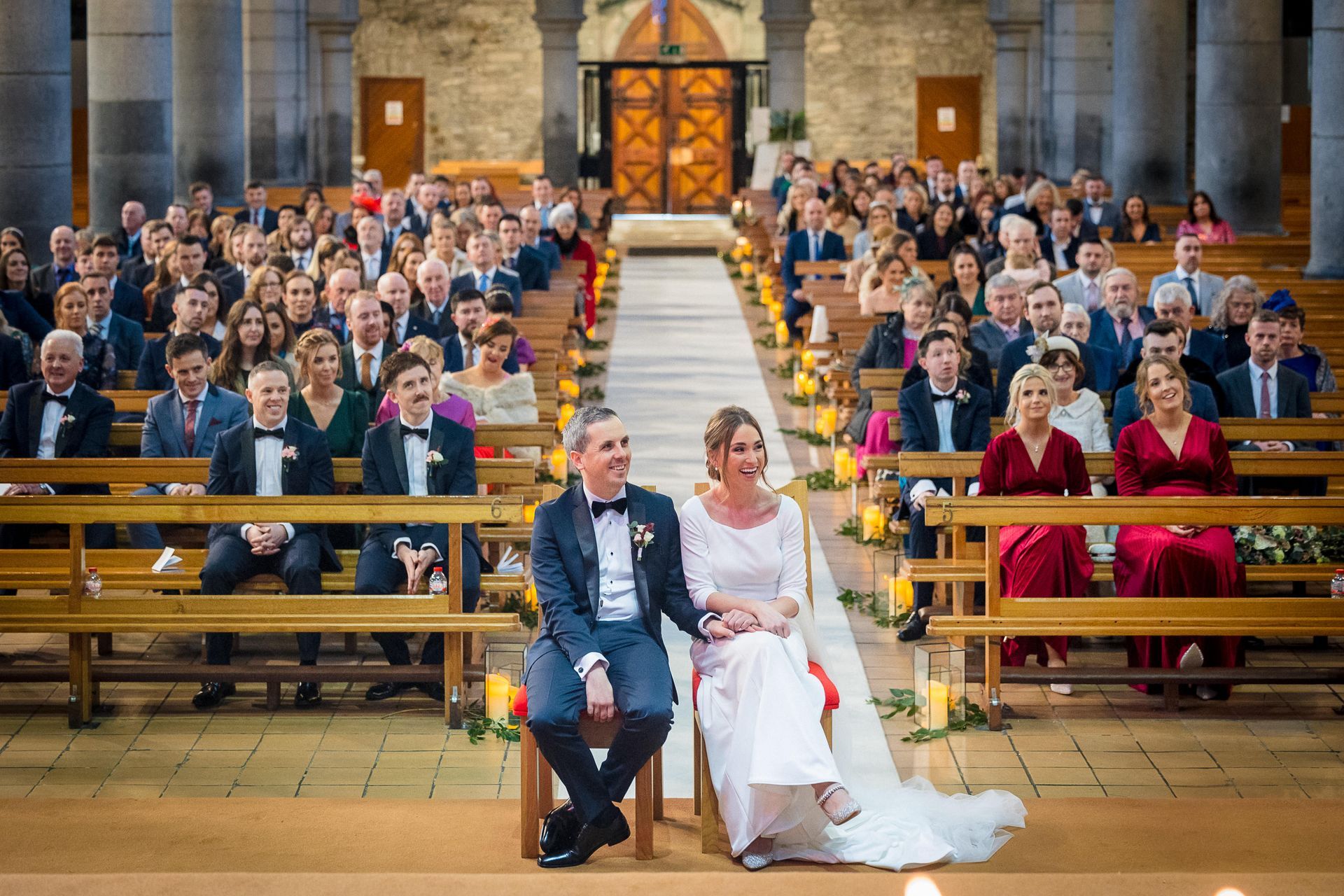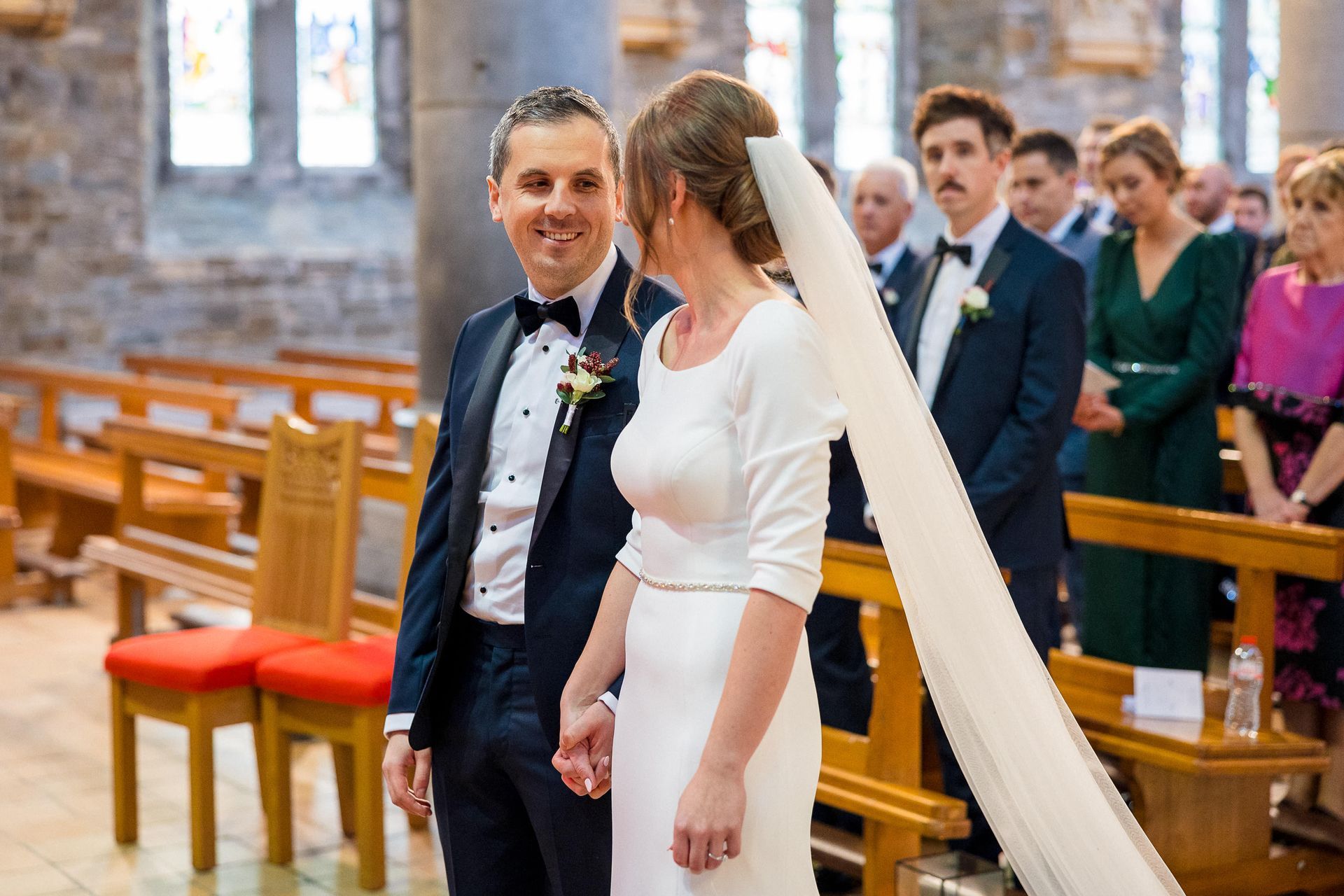 Upon the arrival of this very special day in late November, Shane waited patiently at the top of the Killarney Cathedral in the company of his groomsmen Patrick Bourke and Willie Griffin, along with 190 other close friends and family members who had travelled to celebrate the matrimony. Eimear herself had received a very special visit by the Sam Maguire cup that morning while getting ready (organised by her sister Orlaith and soon to be husband). As both, a proud Kerry woman and GAA fanatic, she was rearing to go following the rendezvous and was led down the aisle by her stunning bridesmaids, Orlaith O’Reilly and Sheila Hayes. Eimear herself emerged to the voice of Ronan Keating singing “This I Promise You”. The beautiful bride absolutely dazzled in her long-sleeved dress, created in crepe material and detailed buttons added to the sheer elegance of her gown with a long train, cascading down the aisle after her. The minute she saw the dress in Virginia’s Bridal in Limerick she knew she had found the one.