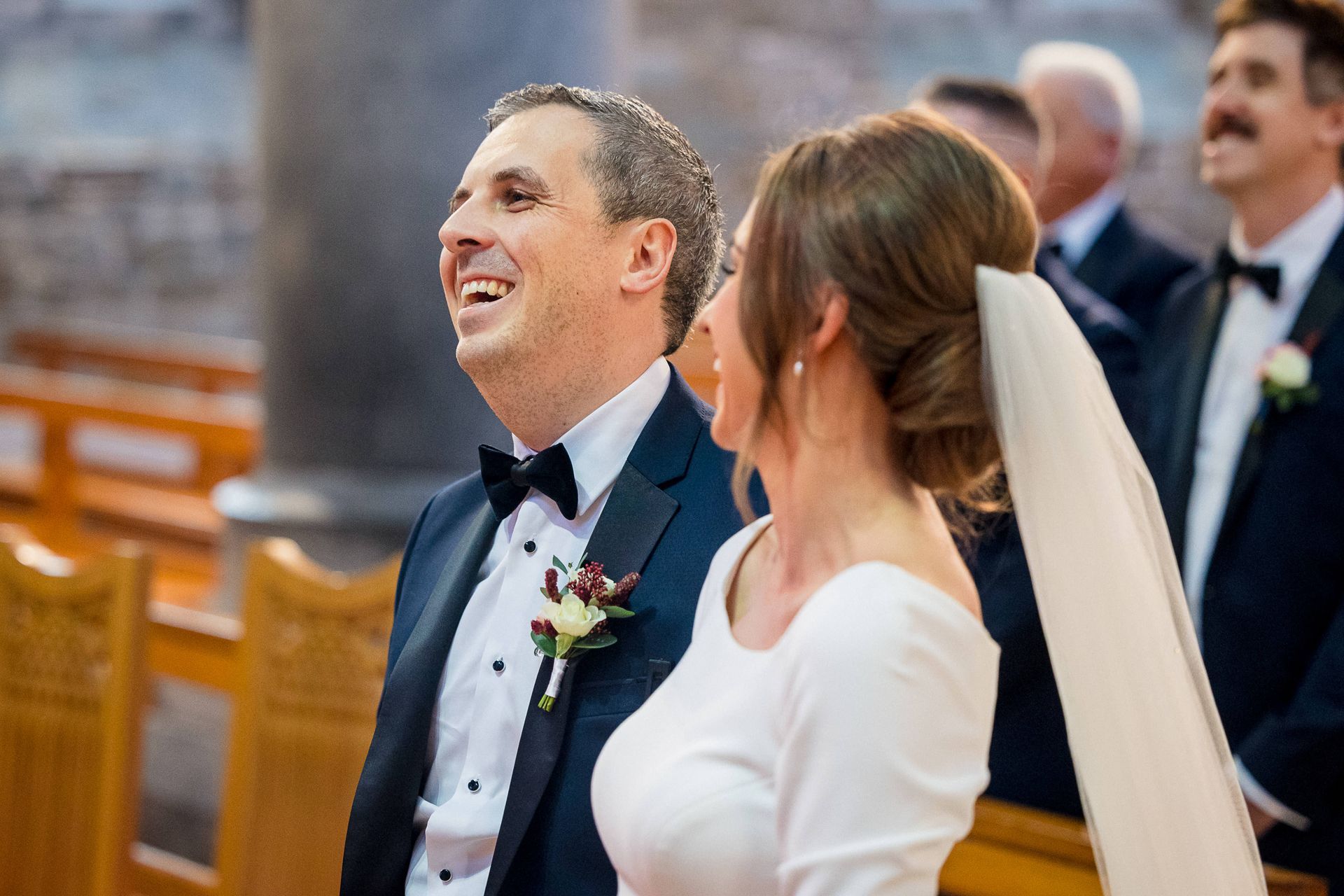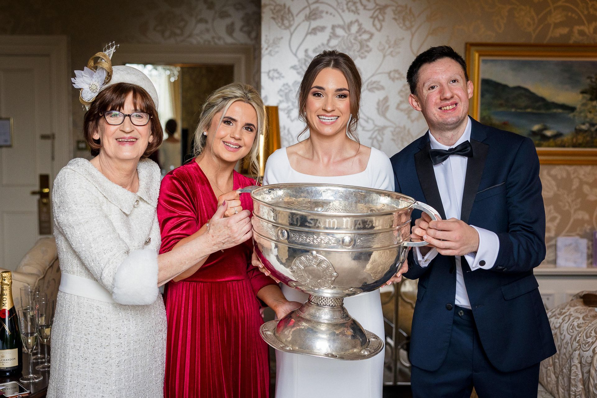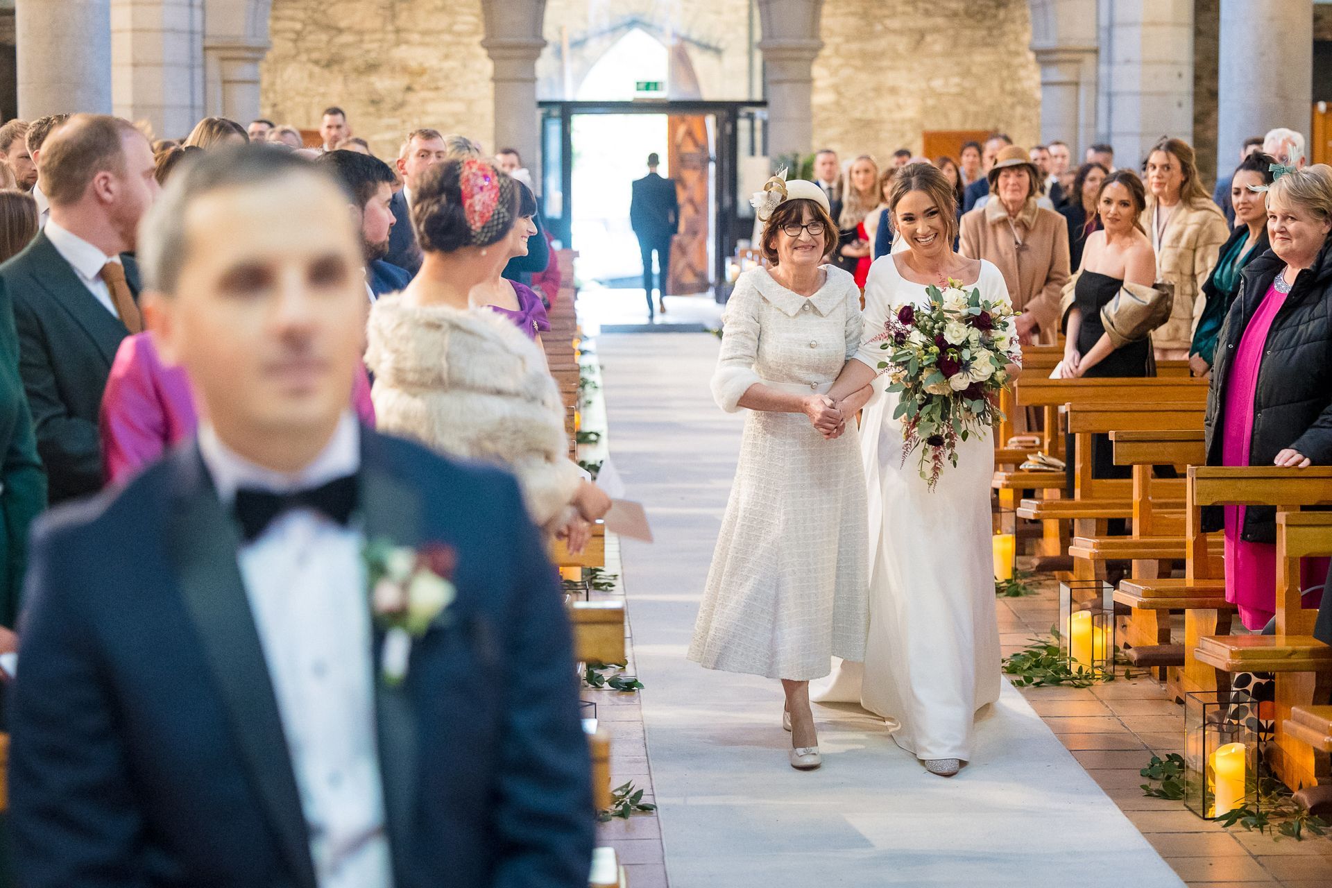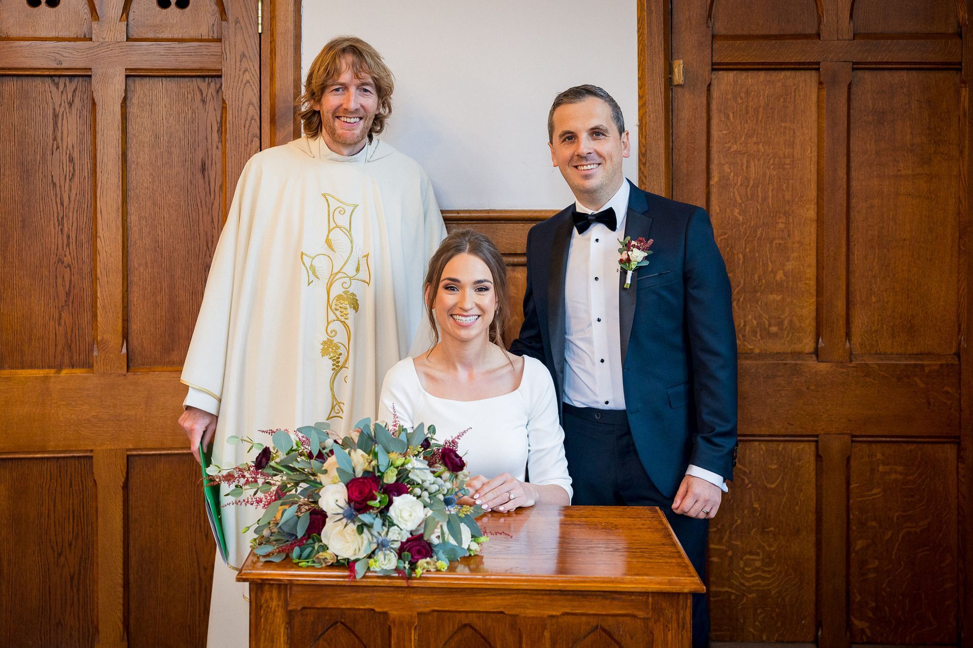 Upon the arrival of this very special day in late November, Shane waited patiently at the top of the Killarney Cathedral in the company of his groomsmen Patrick Bourke and Willie Griffin, along with 190 other close friends and family members who had travelled to celebrate the matrimony. Eimear herself had received a very special visit by the Sam Maguire cup that morning while getting ready (organised by her sister Orlaith and soon to be husband). As both, a proud Kerry woman and GAA fanatic, she was rearing to go following the rendezvous and was led down the aisle by her stunning bridesmaids, Orlaith O’Reilly and Sheila Hayes. Eimear herself emerged to the voice of Ronan Keating singing “This I Promise You”. The beautiful bride absolutely dazzled in her long-sleeved dress, created in crepe material and detailed buttons added to the sheer elegance of her gown with a long train, cascading down the aisle after her. The minute she saw the dress in Virginia’s Bridal in Limerick she knew she had found the one.
