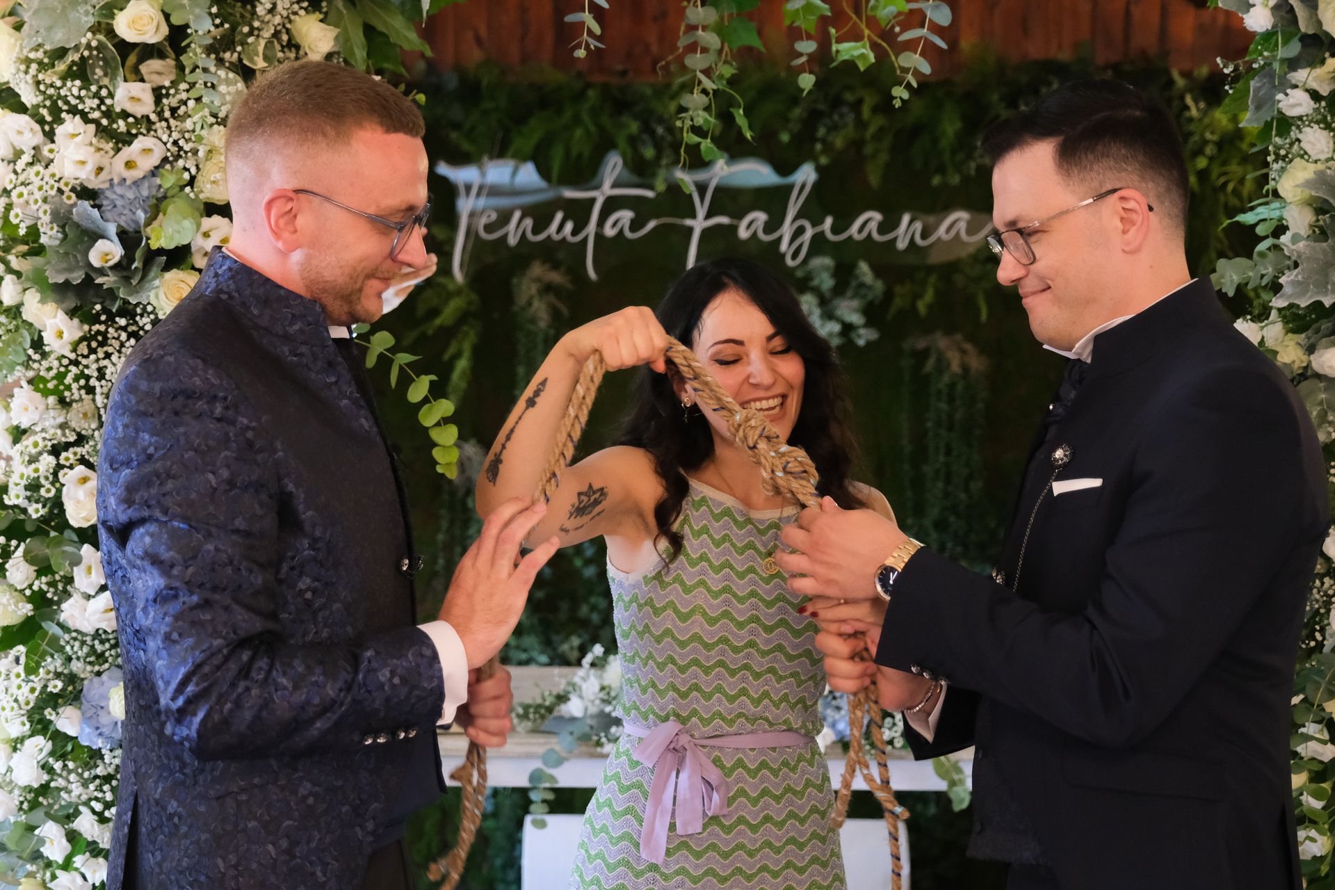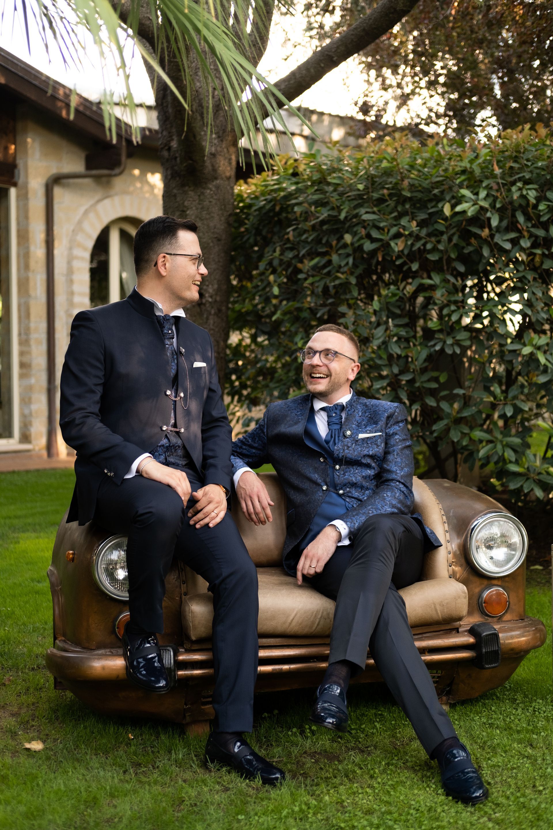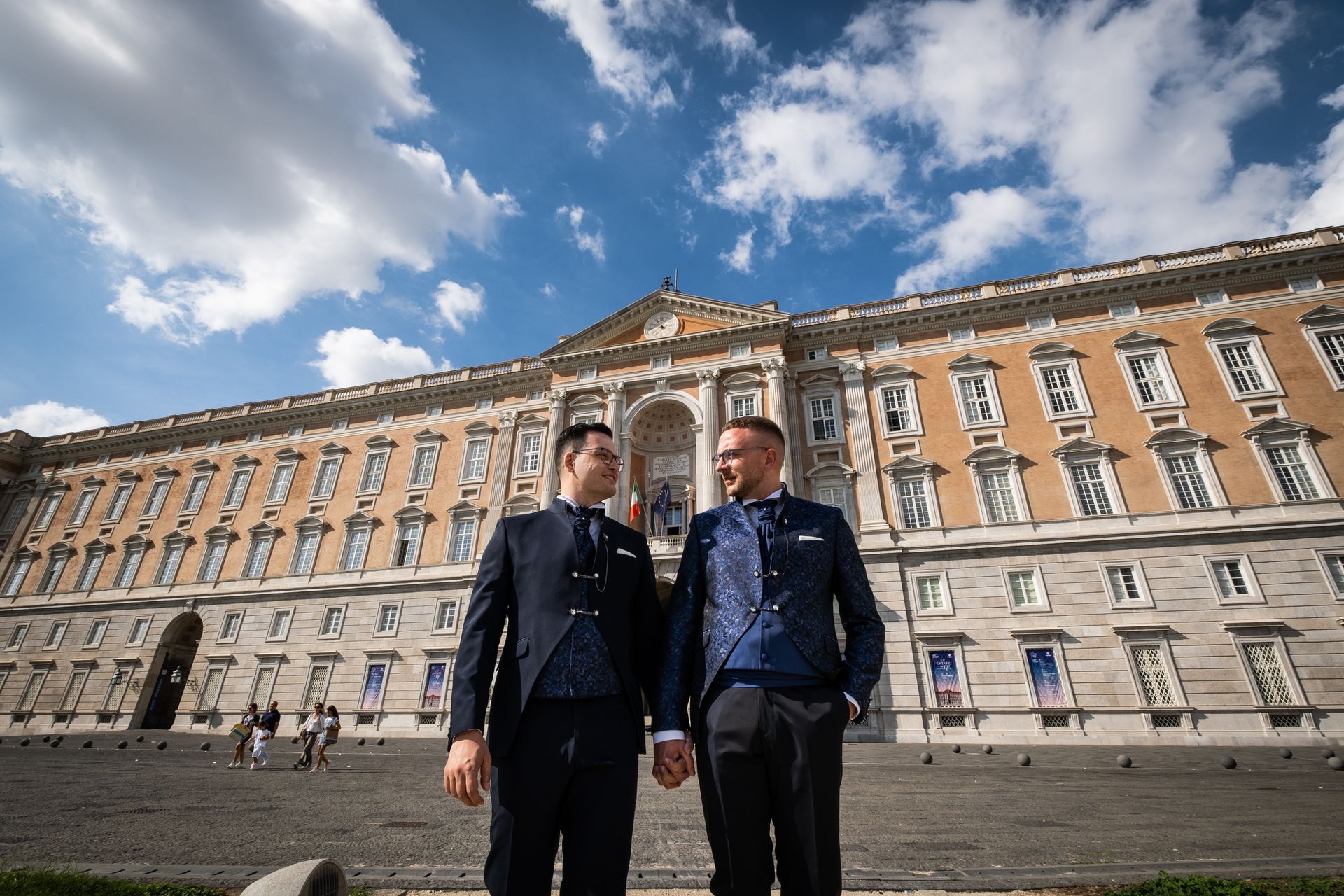 The happy couple decided to go back to Fabrizio’s homeland to tie the knot in August 2022. They both had their sister’s, Deirdre and Francesca, stand with them on their special day. Their ceremony at Tenuta Fabiana, Caserta was “amazing.” Anna, who officiated their ceremony, “was the most amazing, genuine person that we have ever met; she put her heart and soul into making the ceremony the best that it could be. All our guests were in floods of tears throughout the whole ceremony and told us that it was one of the most beautiful that they had ever seen. The ceremony was done in a mix of Italian and English and was very personal to us,” recalls Liam. Although the Italian weather was against them, (it rained aligning nicely with the day they met in Paris), they didn’t let it bother them and they thoroughly enjoyed their indoor ceremony.