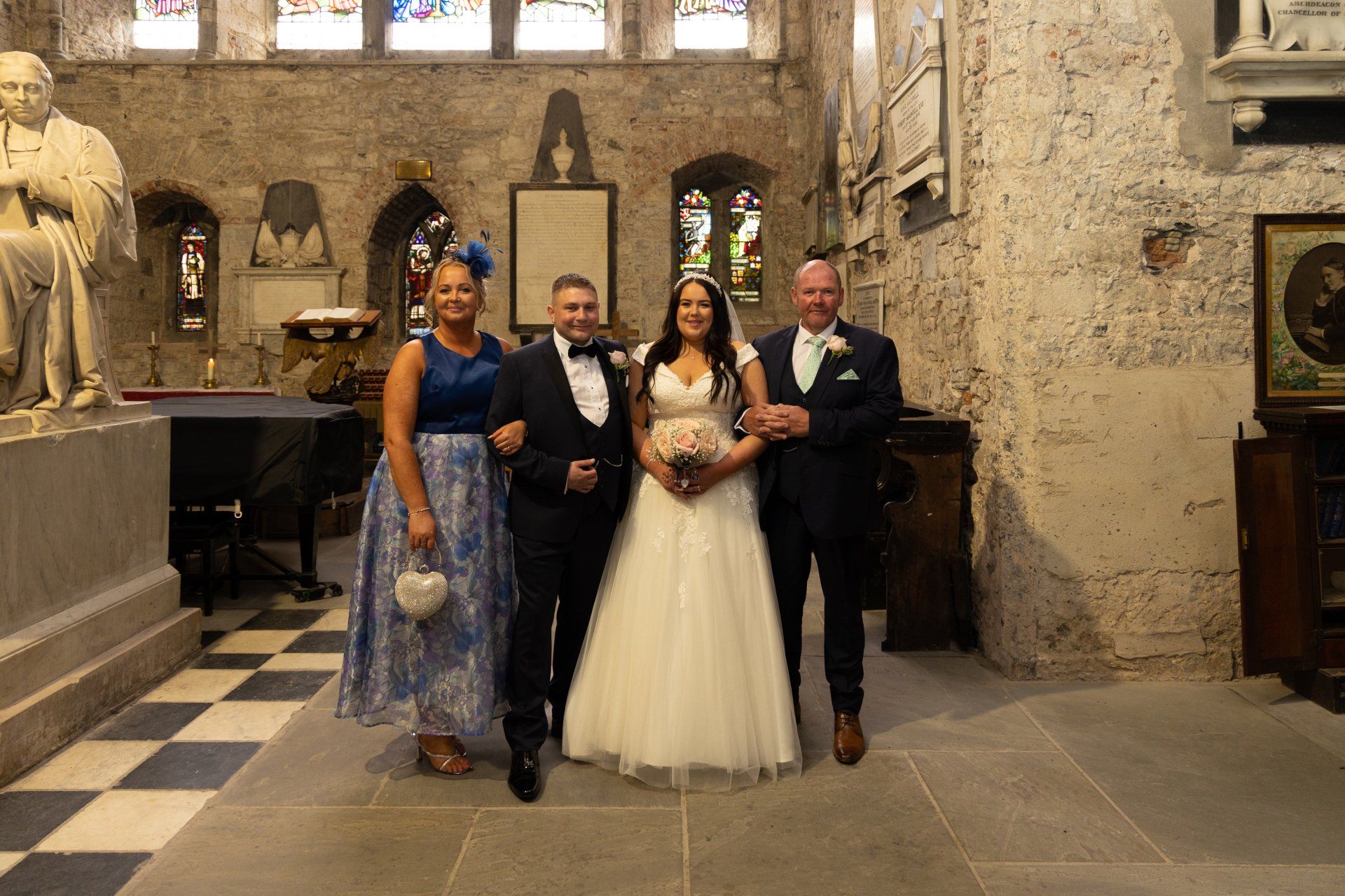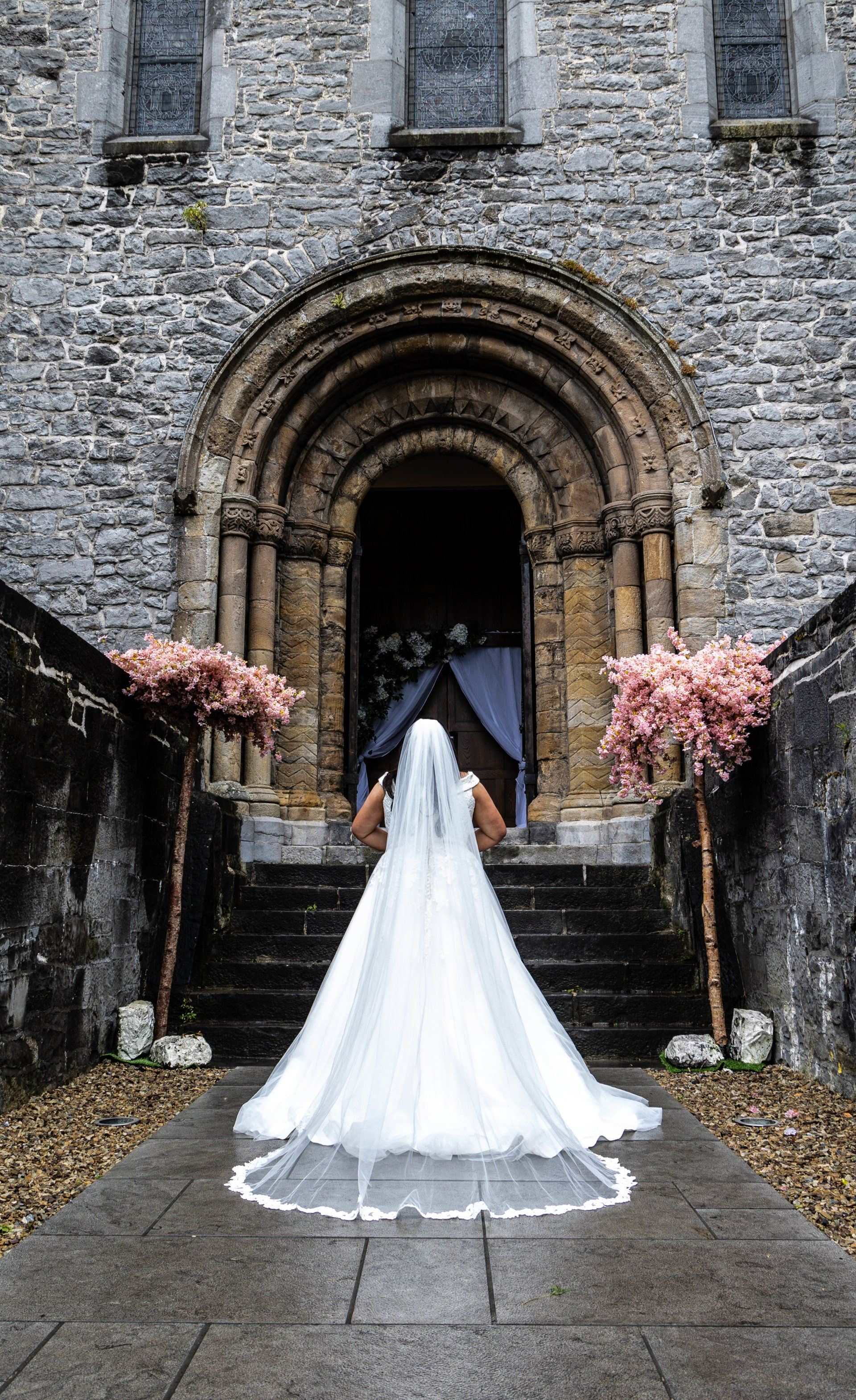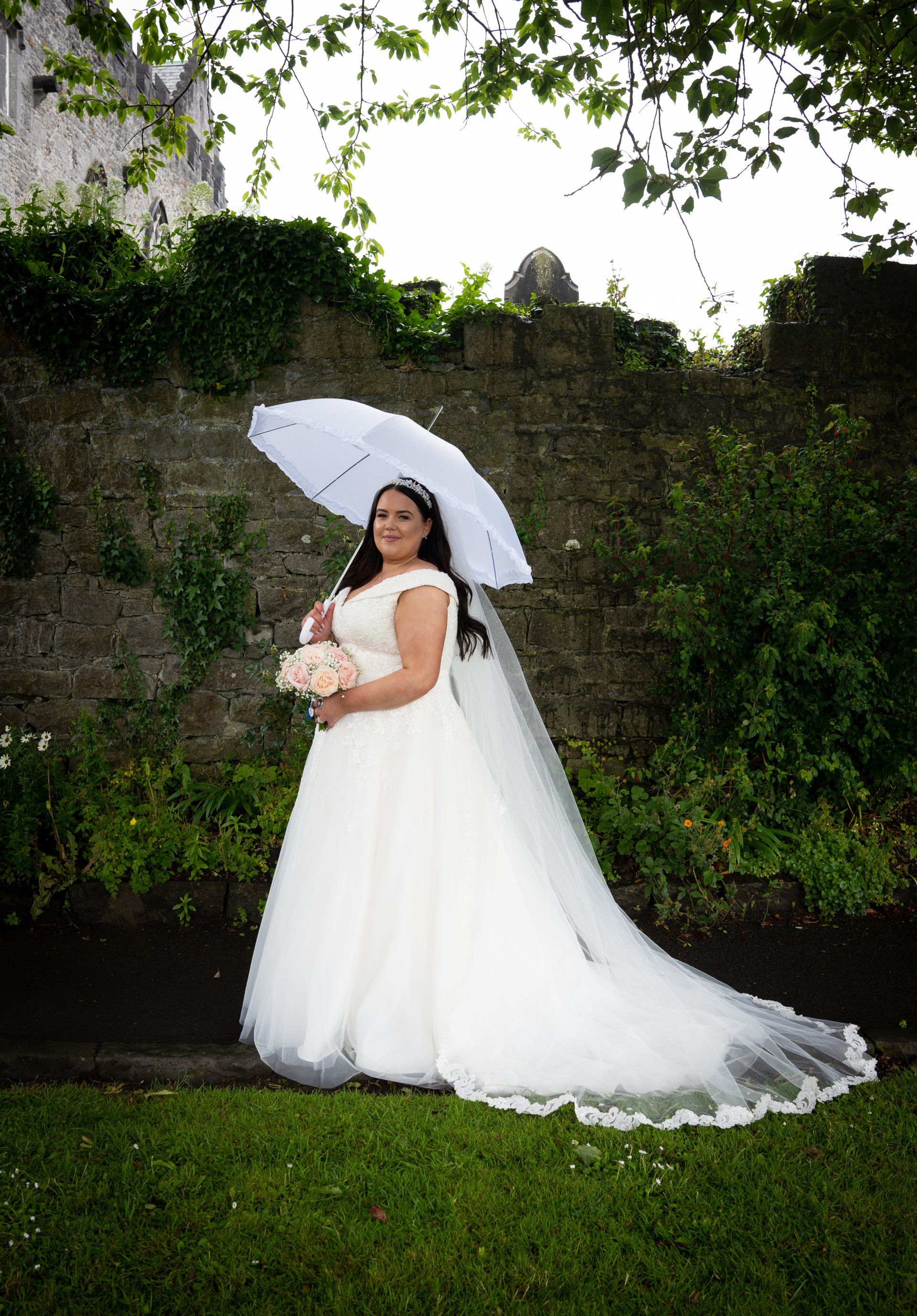 Roseanne stunned in an ivory off the shoulder A-line embellishment dress with a cathedral veil to complement the ensemble. Both were from Virgina’s Bridal in Limerick. “I could not recommend Virginia herself enough. I loved my dress.” Malcolm and the boys donned suits from Esquire Formal Menswear, also based in Limerick.