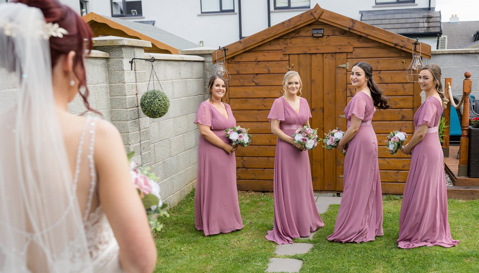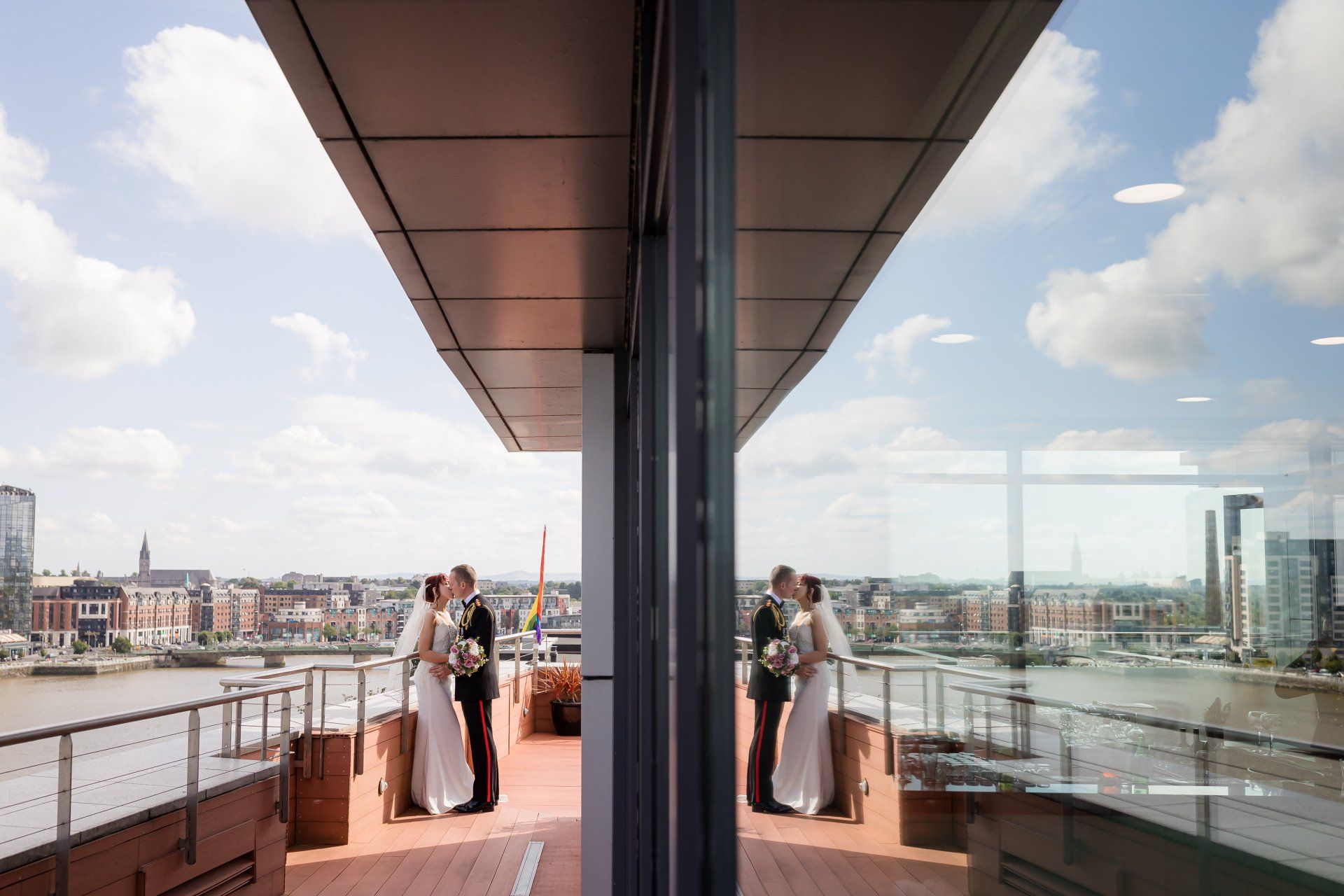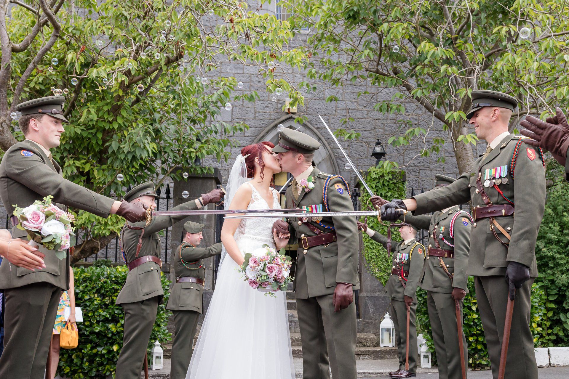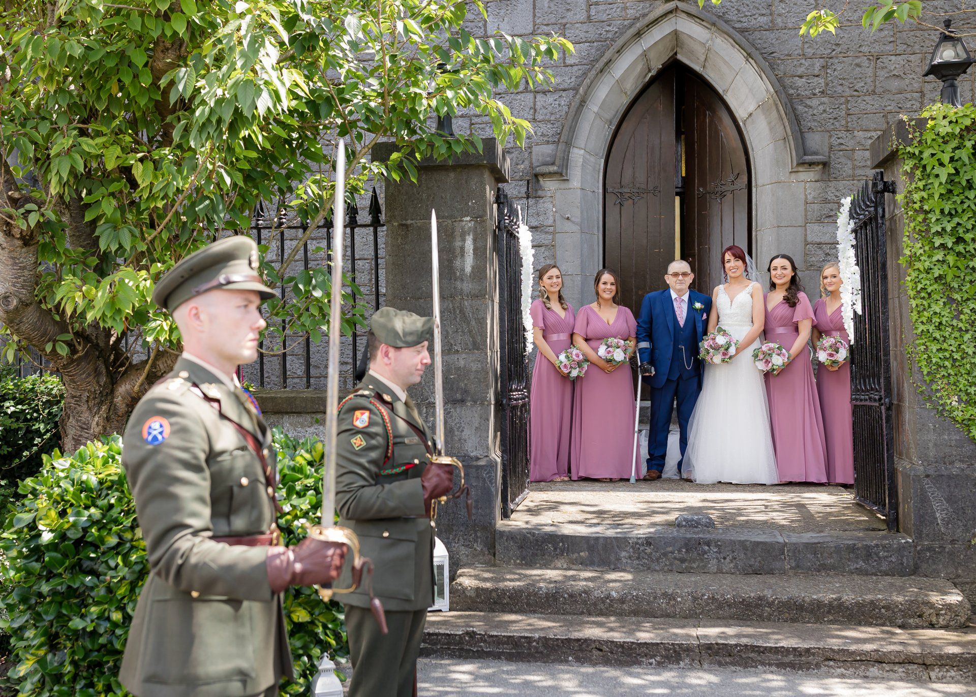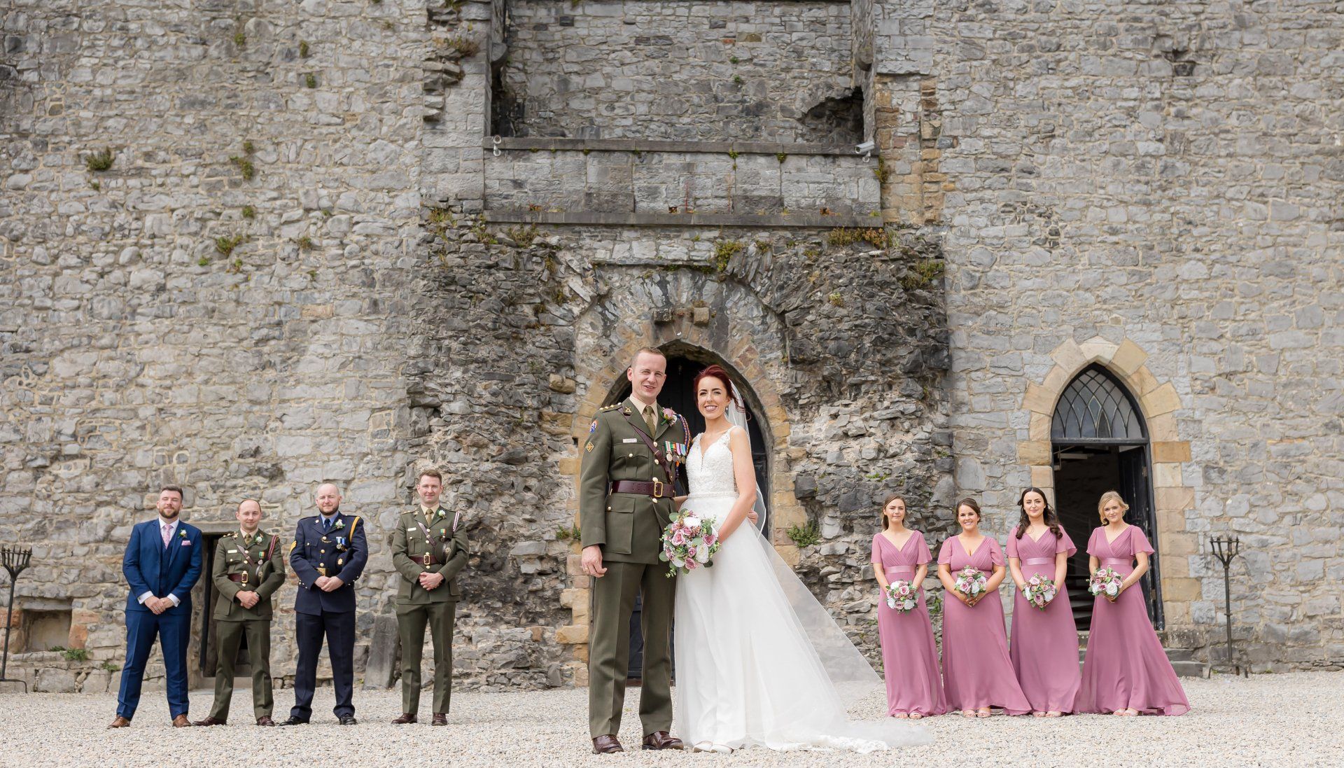 In front of 130 family and friends, Tina walked up the aisle of Sarsfield Barracks, in a stunning ivory crepe dress, purchased from Maeve in the Bridal Emporium, Miltown Malbay. It was decorated with lace and sequins on the bodice and lace donned the train, complimented with a butterfly back. Tina’s two-layer overskirt was attached by a sequin belt. They had four bridesmaids and four groomsmen by their side, and they loved every minute of the day. They both recall fondly their first meeting at the top of the aisle and really cherished being alone in their wedding car from the church to King John’s Castle, where photographer Tony Clancy captured some wonderful pictures of the city. “We enjoyed looking over to see our guests enjoying the drinks reception on the balcony of the City View Suite at the Strand Hotel,” recalls Tina.
