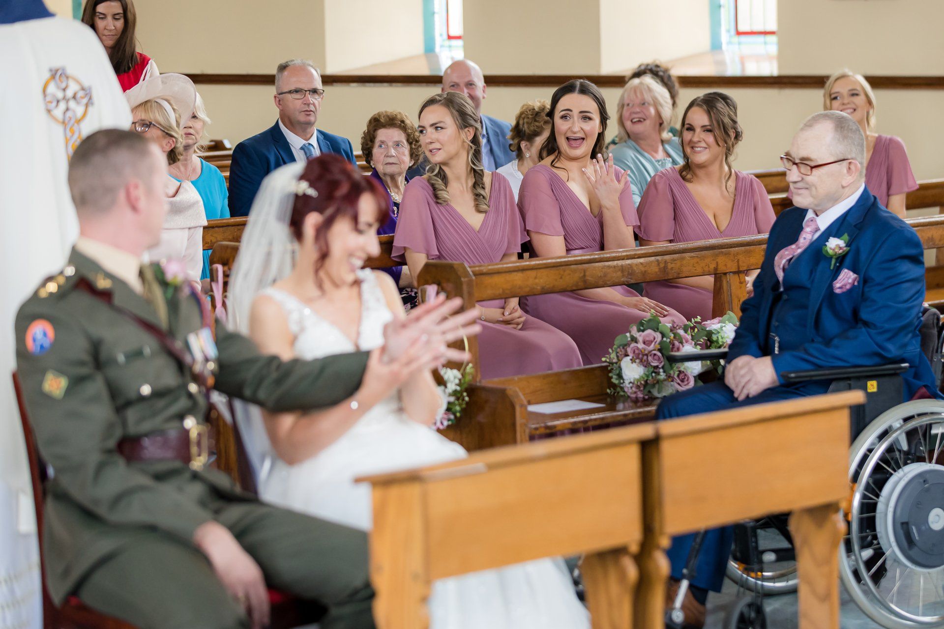 When photographs were completed, back to the Limerick Strand they went to enjoy their evening reception. They enjoyed salmon or beef as their main course and their first dance was “The one” by Kodaline. In lieu of wedding favours, they donated money to the Irish Red Cross Clare division.