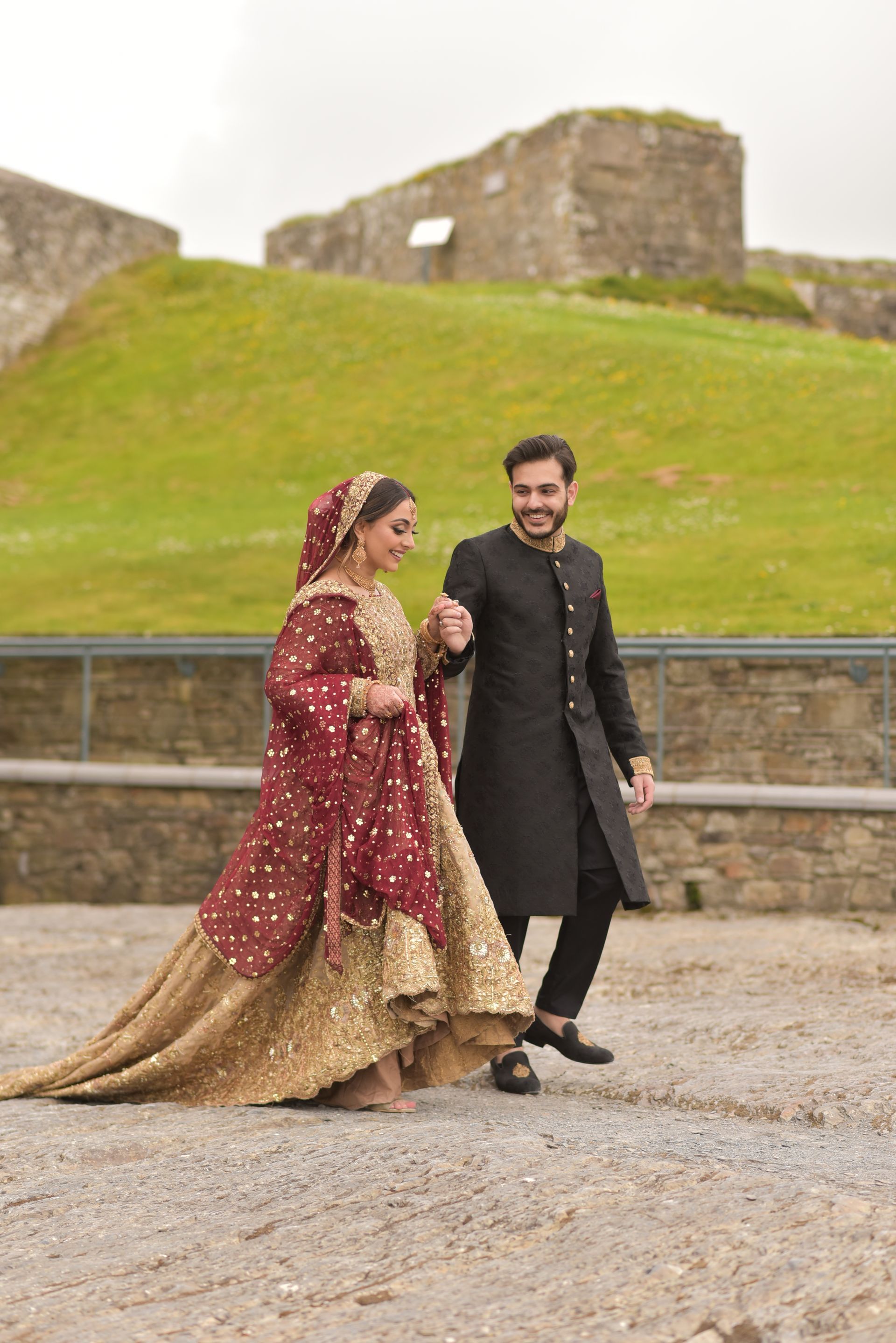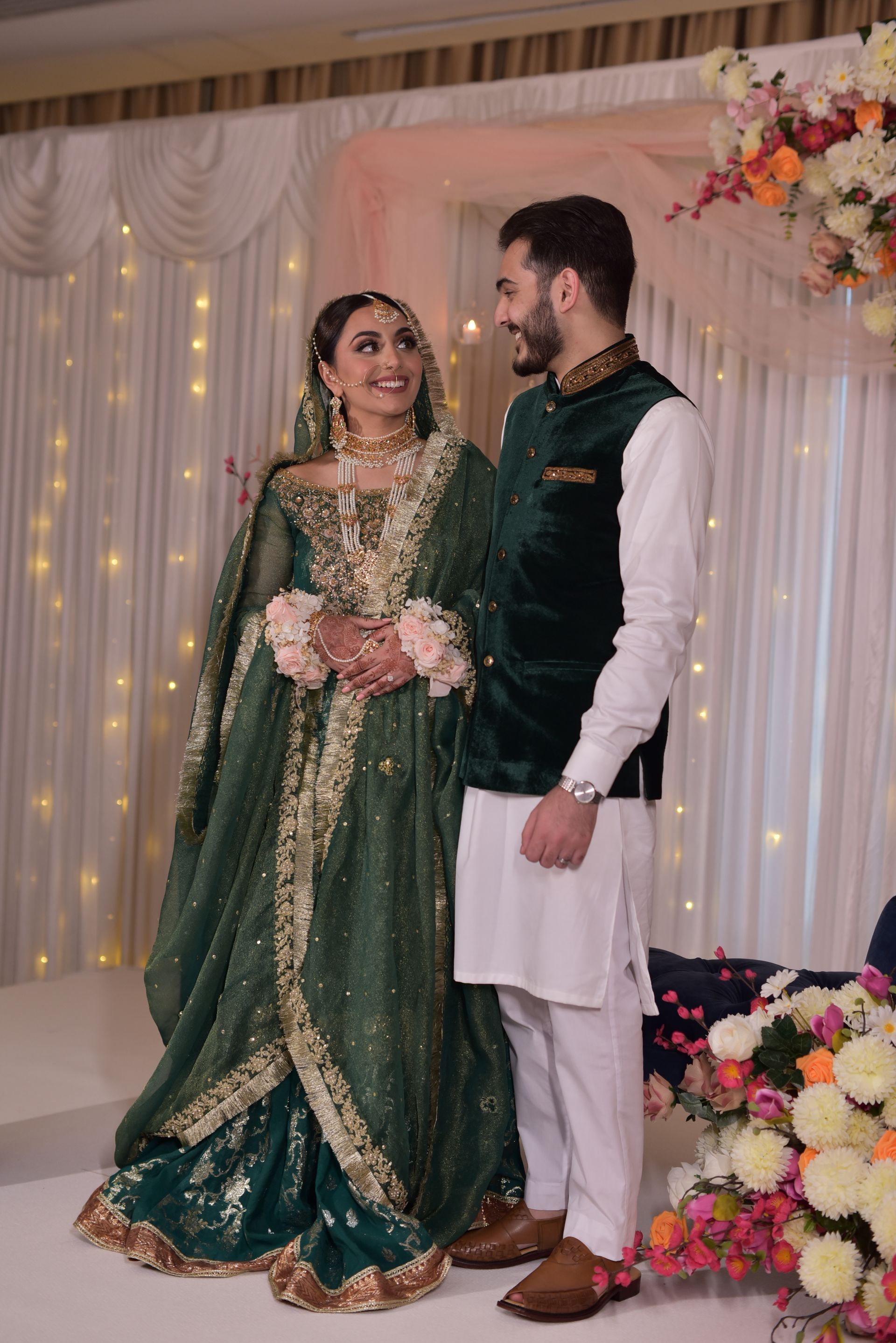 On the May 8, 2022, the “Nikkah” took place with their families only; which is a ceremony of signing papers and being wed in Indian culture and must happen two days before the celebrations. Amina stunned in a beautiful green dress called a Lehenga, designed by Pakistani designer Uzma Babar. This took eight months of planning, and the dress was imported from Pakistan. The groom entered wearing a Sherwani from Burooj in the UK. Adil entered to the sound of a dhol player; which is a type of drum played at weddings in the Indian culture.