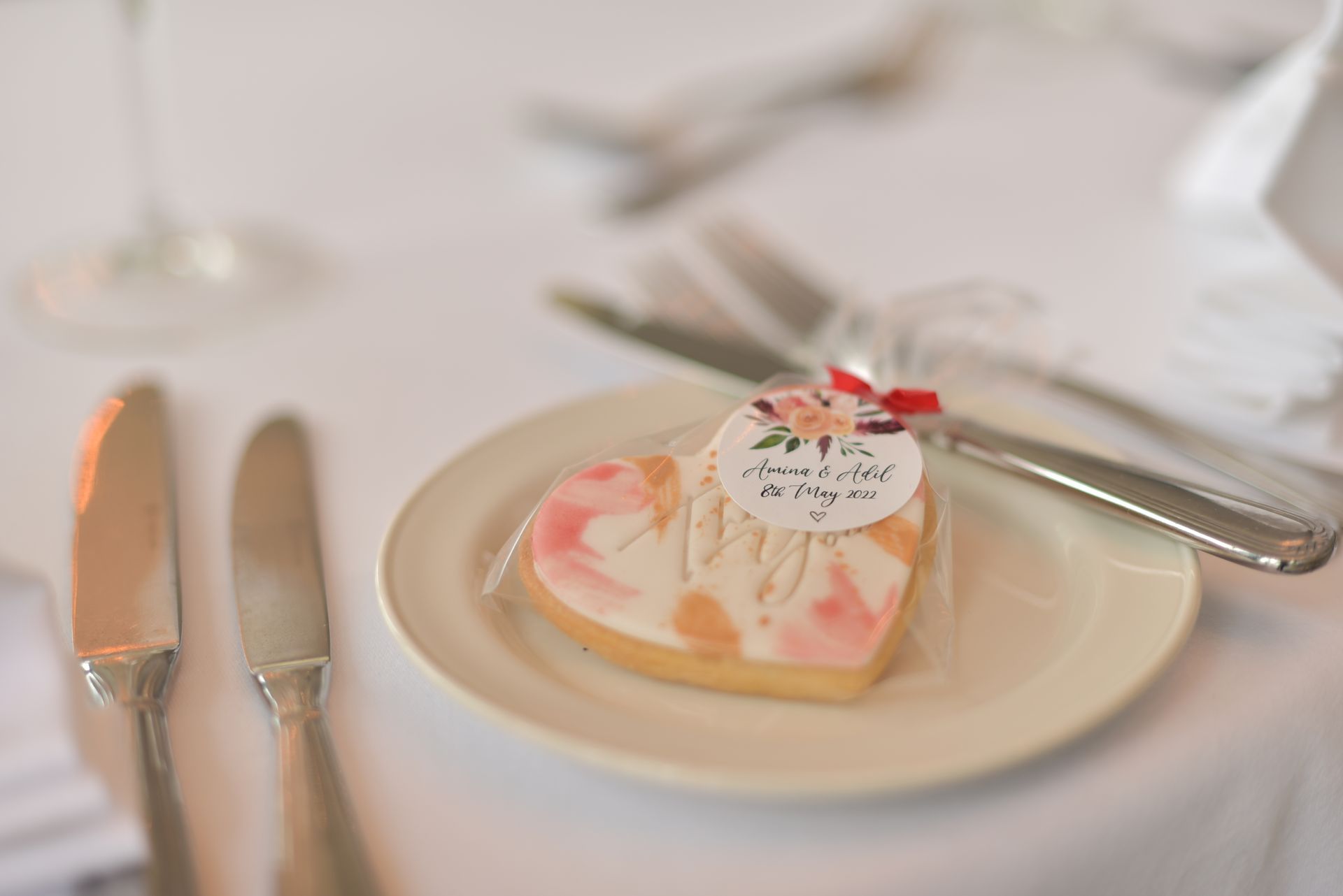 The guests were provided with beautiful bespoke “Thank You” cookies in a heart shape, courtesy of the newlyweds, made and individually packaged locally by Blackthorn Bakery in Kinsale. Amina recalls them as being “the best cookies in the world.”