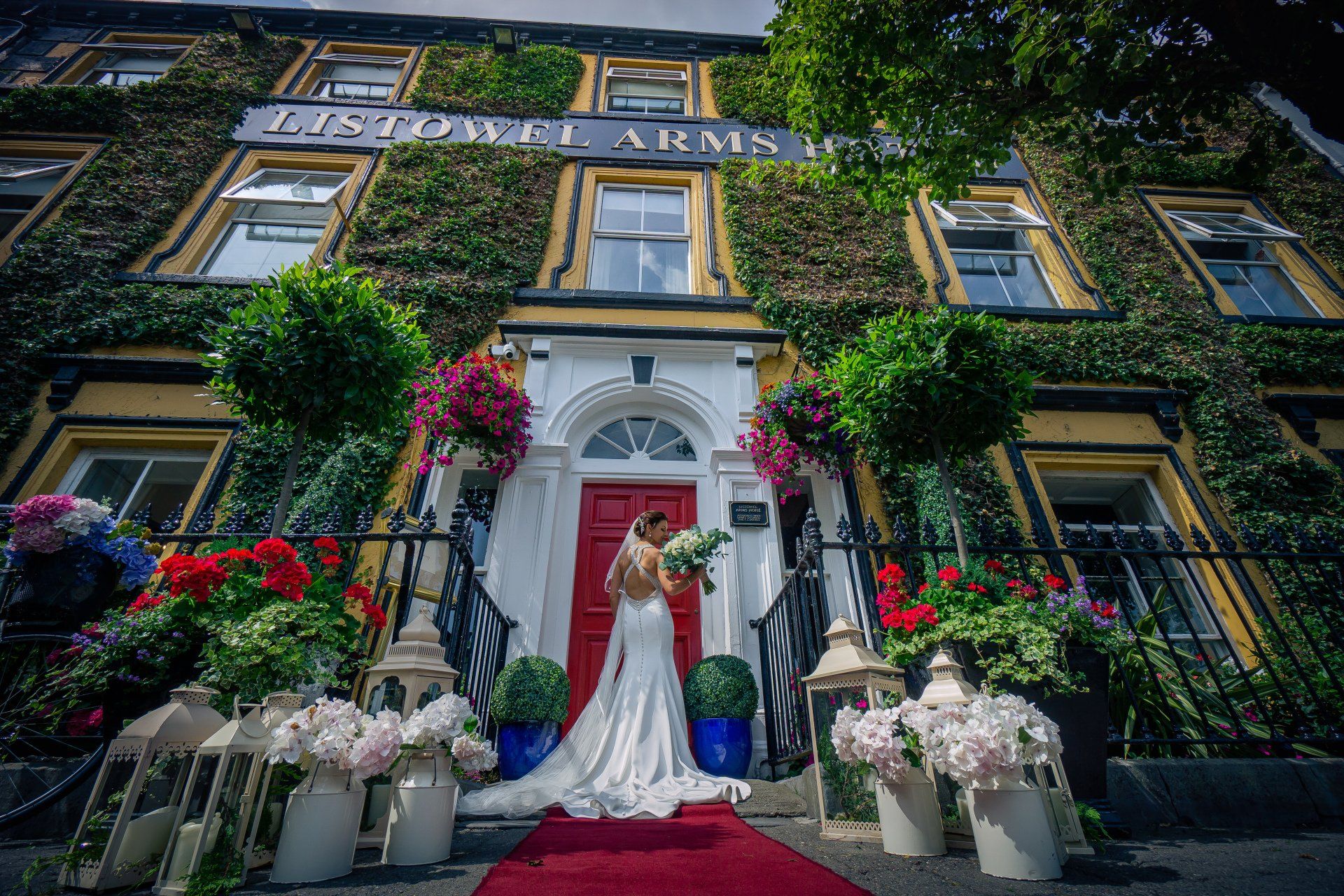 “It was a beautiful, warm, sunny day and the front of the hotel, which is covered in colourful ivy, made for a stunning entrance photo. The drinks reception was out on the balcony overlooking the River Feale and with Manilla Strings providing the background music, it felt to everyone like we were on a foreign holiday. The staff at the Listowel Arms were first class, attending to all our needs in a relaxed, professional and friendly manner. The meal was absolutely top class, with all guests commenting on the five-star quality food and service. Although we were limited to 50 guests due to the restrictions, the ballroom was arranged superbly which made it seem like there were many more guests. All round, a wonderful day from start to finish.”