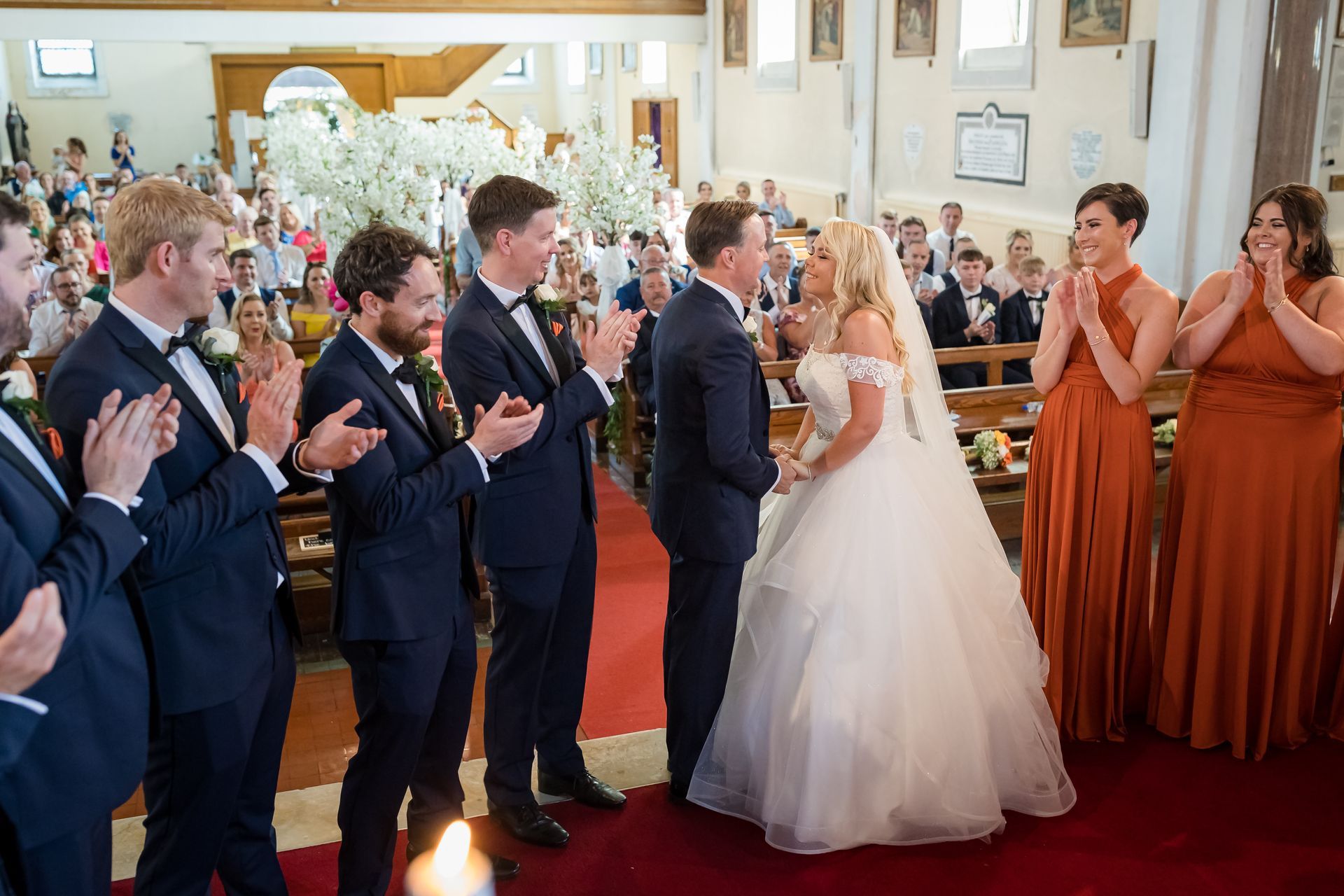 Amanda and Martin created a bookmark for each of her guests, which also doubled up as a place names. They also made a donation to the Alzheimer’s Society of Ireland.Martin, ever the romantic, created a surprise flash mob for his wife. “My favourite song is ‘Rolling on a river’ by Tina Turner, Martin, along with his friends as back up dancers, performed a lip sync to the song, starting with tearing off Velcro pants to reveal a sparkly skirt, a moment I will never forget! It was too funny,” shared the bride. Amanda’s favourite memory of their big day was the car journey to the hotel from the church. “It was lovely to share a quiet few minutes together with the roof down and enjoying a glass of bubbly and little chat.”