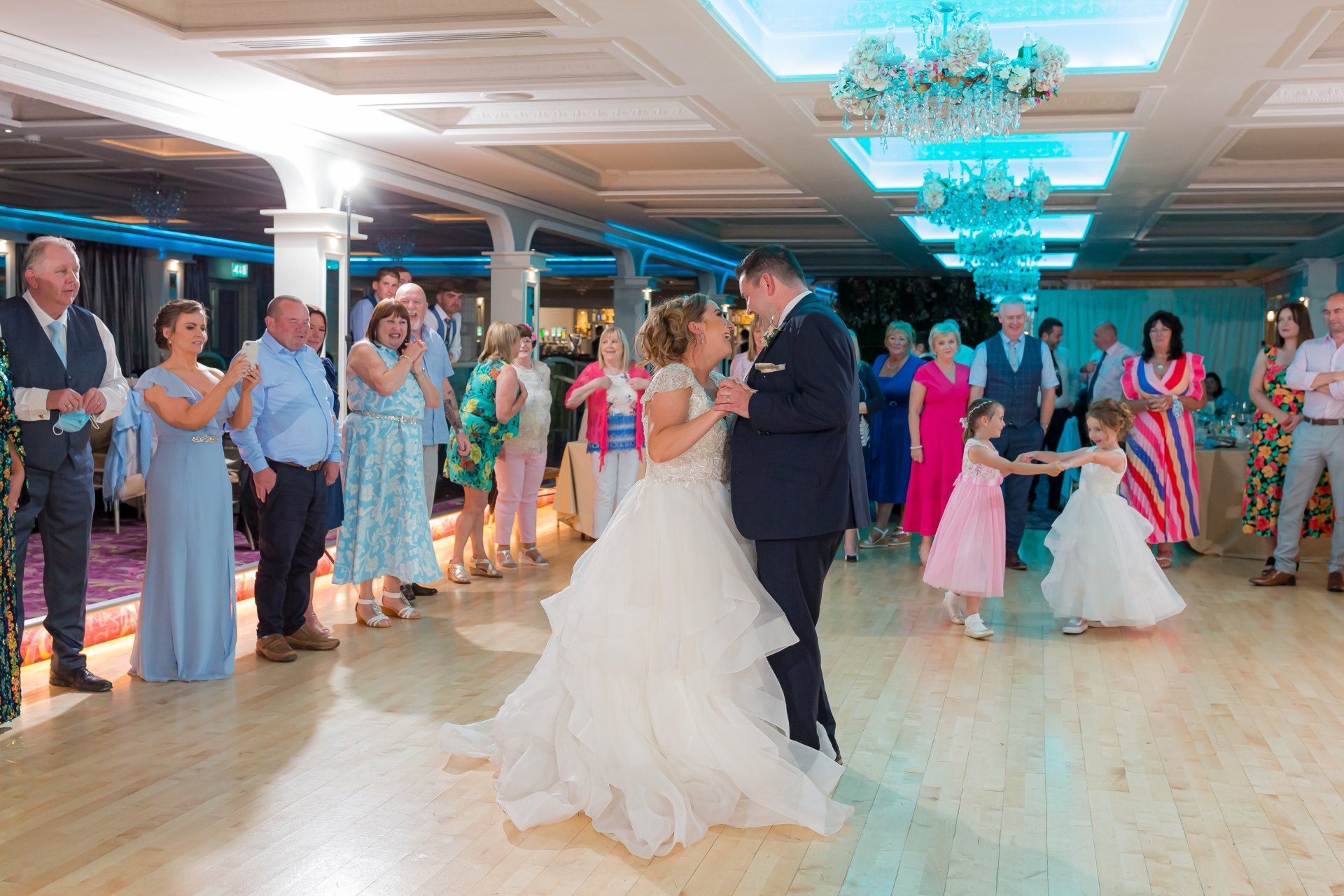 After a beautiful wedding ceremony, where Kerrie walked up the aisle to “And I love you so” by Pery Como, the newlyweds went back to the Woodlands House Hotel to kickstart their celebrations. They had expected, due to heavy rainfall that morning, to have their drinks reception indoors but much to their delight sammy sunshine joined them and the wonderful staff at the hotel moved the whole thing into the garden, making it the perfect start to, what was, the best day of their lives. Guests had a choice of beef, salmon or turkey & ham for their main course and everyone enjoyed their meal.